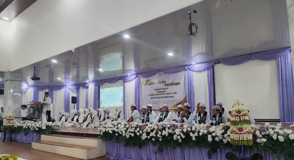 Balangan, 25 April 2026 – SMPIT Darul Fikri sukses melaksanakan kegiatan Khotmul Qur’an dan Imtihan Metode Ummi yang berlangsung pada Sabtu (25/04/2026) di Aula Mayang Maurai. Kegiatan ini diikuti oleh sebanyak 26 siswa-siswi yang telah menyelesaikan pembelajaran Al-Qur’an dengan metode Ummi.