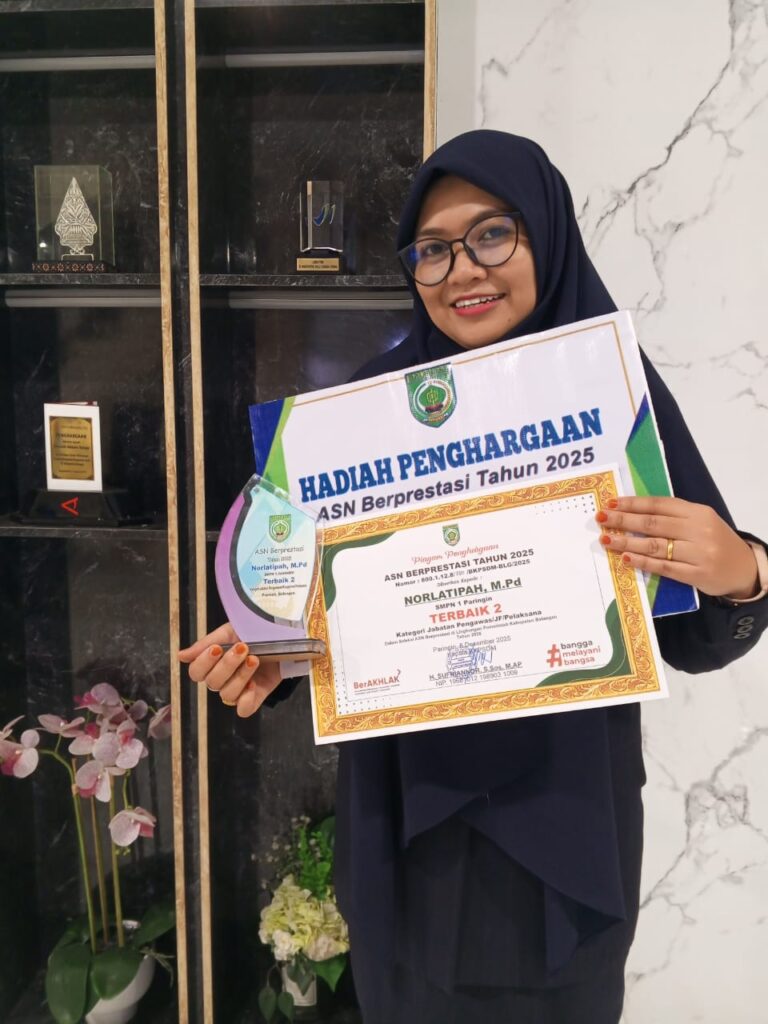 Prestasi membanggakan kembali diraih oleh jajaran Yayasan Al Izzah Balangan. Ibu Norlatipah, M.Pd, selaku Pengurus Yayasan Bidang Pembinaan dan Kepegawaian, berhasil meraih Terbaik II ASN Berprestasi Tahun 2025 pada Kategori Jabatan Pengawas/JF/Pelaksana.